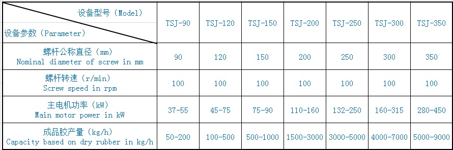 適用于各種合成橡膠,如順丁橡膠,稀土順丁橡膠,低順橡膠,溶聚丁苯橡膠,乳聚丁苯橡膠,丁基橡膠,溴化丁基橡膠,異戊橡膠,三元乙丙橡膠,聚丙烯酸酯橡膠,丁腈橡膠,SBS,SEBS,SIS,炭黑充填天然膠等。進(jìn)口處含水率為40-60%的膠料經(jīng)本設(shè)備處理后,出口處含水率可控制在6-15%。